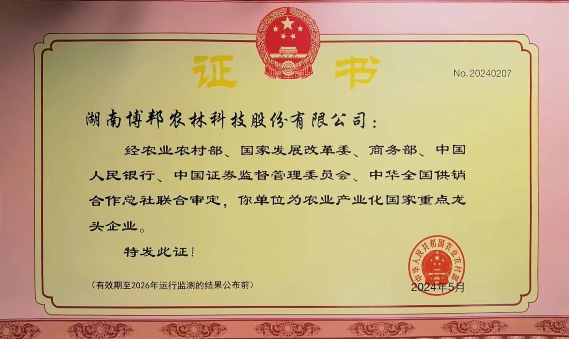 喜报│ 博邦股份荣获“农业产业化国家重点龙头企业” 称号